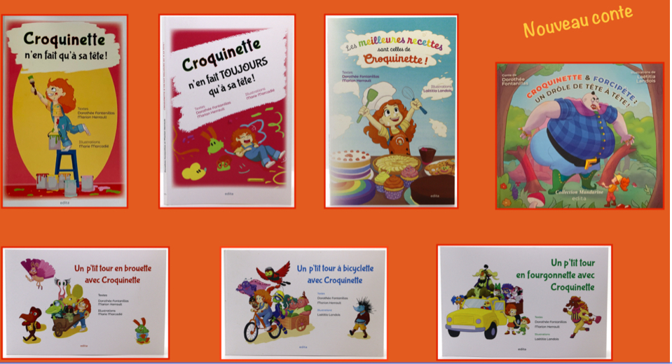 Dorothée commence à écrire à l’âge de de 22 ans d’abord de la poésie puis l’écriture de nouvelles. Elle est passionnée par les mots et tout naturellement décide d’animer des ateliers d’écriture pour séniors, adultes et enfants. Elle rencontre Marion Herrault âgée de 9 ans lors de ses ateliers pour enfants et devient sa co-autrice en littérature jeunesse. Ensemble elles vont développer un personnage haut en couleur, espiègle, pleine de malice et de vie, une petite fille aux cheveux mandarine remplie de taches de rousseurs prénommée : CROQUINETTE. Les aventures de Croquinette dans la Collection Mandarine se composent d’un série de livres à partir de 3 ans et jusqu’à 9ans. Des livres illustrés, ludiques, pédagogiques, instructifs, amusants avec des animaux aux allures très rigolotes.